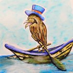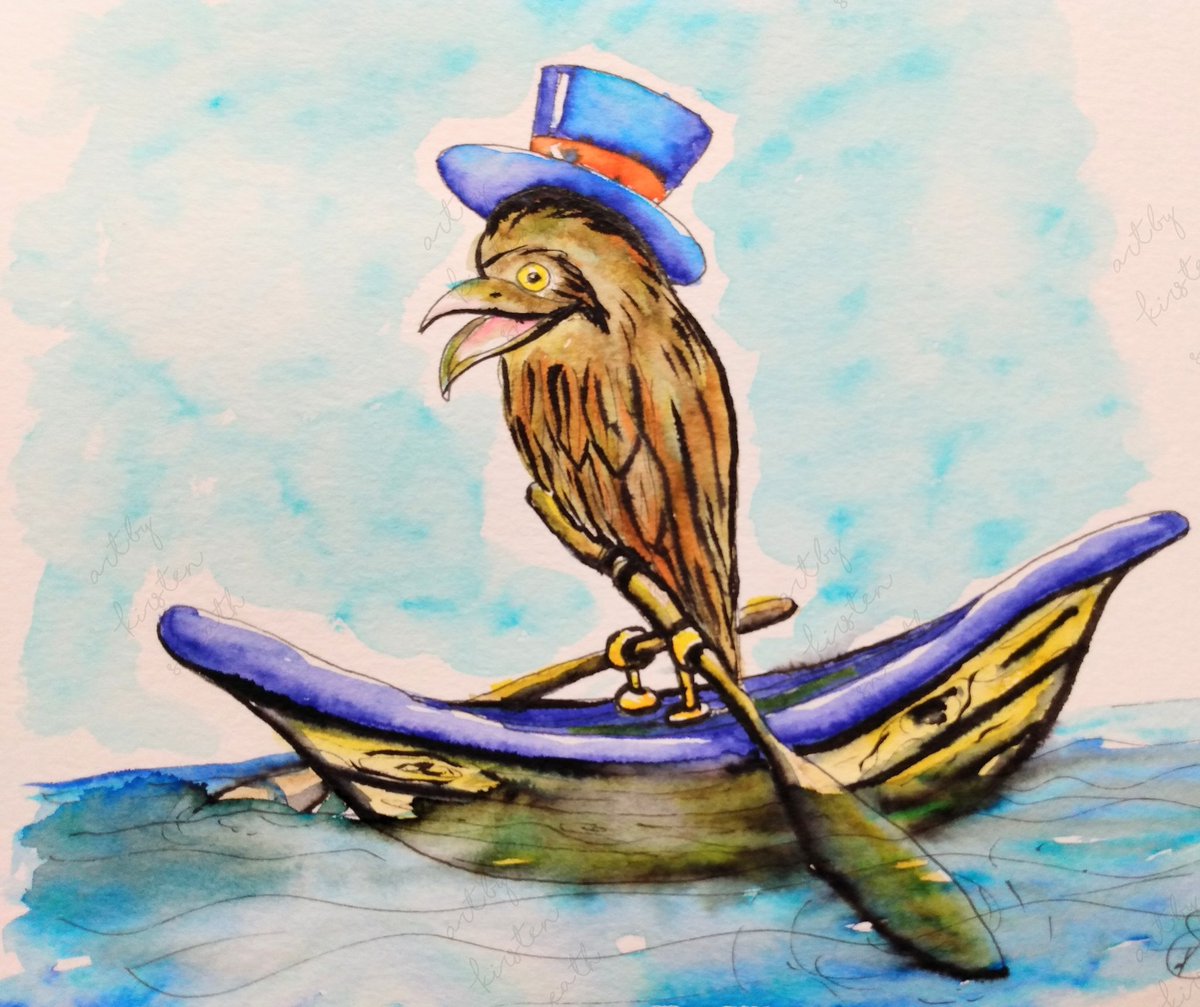 Day 3 #inktober prompt #vessel #Birdtober prompt #SouthAmerican This is a #Potoobird 😁my daughter said he should have a hat and be called Snazzy #inktober2021 #birdtober2021 #birdillustration #birdinaboat #snazzybird