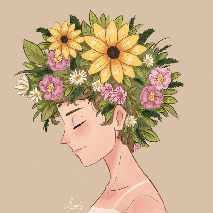 Sunflower girl 🌻 @cmsn_ART @CmsnArtist_Id #zonakaryaid #artidn #sunflower #opencommission #jasagambar #potraitillustration #illustration #artistsontwitter #cuteart #procreateart #art
