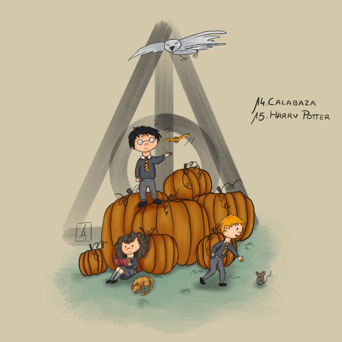 Inktober dia 14 y 15 (me salto un par..🙄) 14. Calabaza 15. Harry Potter #inktober2021 #Harry #Potter #drawtober2021 #potterhead #pottery #deathlyhallows #pumpkin #Halloween #HermioneGranger #HarryPotterMagicAwakened #digitaldrawing #Procreate #iPadPro #illustration