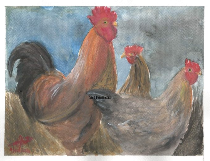 Watercolours on 300GSM, 25% cotton, cold pressed paper. #Inktober2021 #inktober2021day9 #watercolours #birds #poultry #barnyard, #animals #animalportrait #birdportrait #visualart #cainpinto