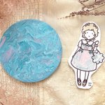 🐋 sense 2 Mid Night Closet出品作品 フルイドアートで作ったキャンバス作品から 一部をイラストに転用。 sense 1との違いもお楽しみいただければと思います💐 #illustration #lolitafashion #originalcharacter #pouringpaint #イラスト #ロリータファッション #オリジナルイラスト
