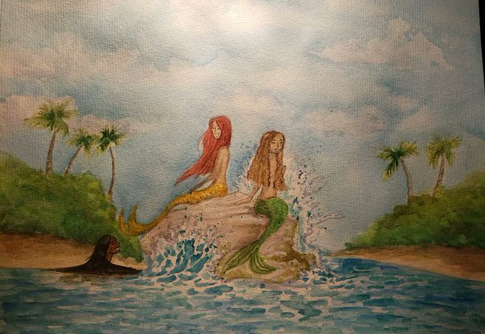 Outra encomenda: As Três Sereias #Mermaid #mermay #beach #playa #waves #SaraRetweets #thelittlemermaid #praia #ArtistOnTwitter #artwork