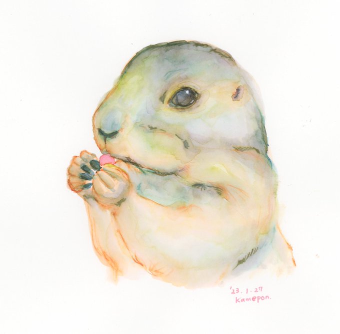 インク画100本ノック! 16/100 このインクとこのインクを混ぜたらどうなるのか…。何色くらい混ぜれるのか…。 色々と試して出来た混沌としたプレーリードッグはこちらです。(`・ω・´) 桜の花弁を食べてます🌸 #プレーリードッグ #イラスト #インク #色彩雫 #prairiedog #illustration #ink