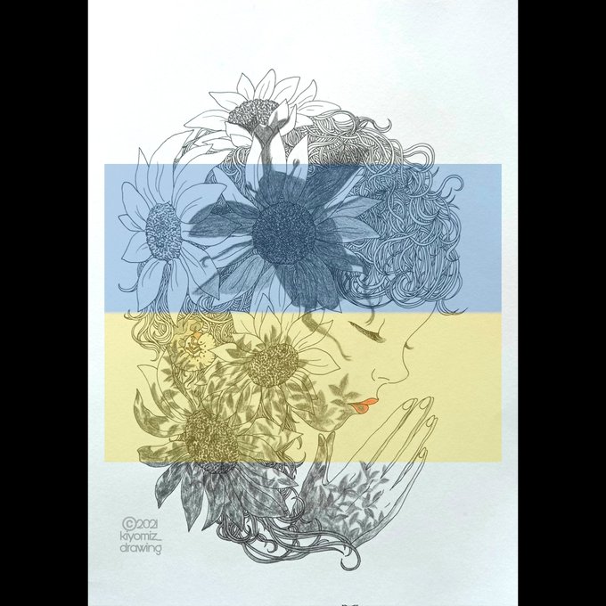 この世の悲しみが癒されますように。 戦争が始まった頃に描いた絵の再掲。 テレビやニュースでの扱いが小さいからって、決して忘れてはいけない。 戦争が終わりますように。地震で傷ついた人達が心身を癒され生活を再建できますように。 #PrayForUkraine #PrayForTurkeyAndSyria #イラスト