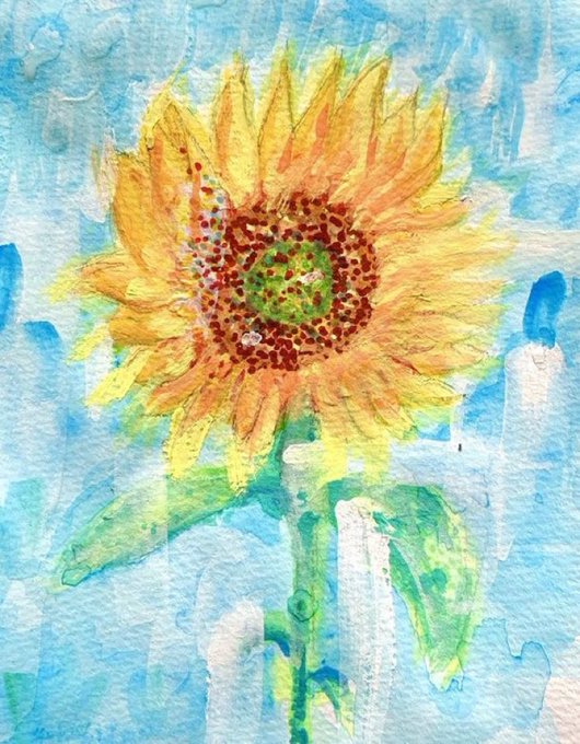 「向日葵、あなたと陽射しの中で」(2022年)水彩画 #イラスト #水彩画 #PrayForUkraine #戦争反対 #sunflowerfromjapan #アート好きな人と繋がりたい #アートで世界を平和に #standwithukraine