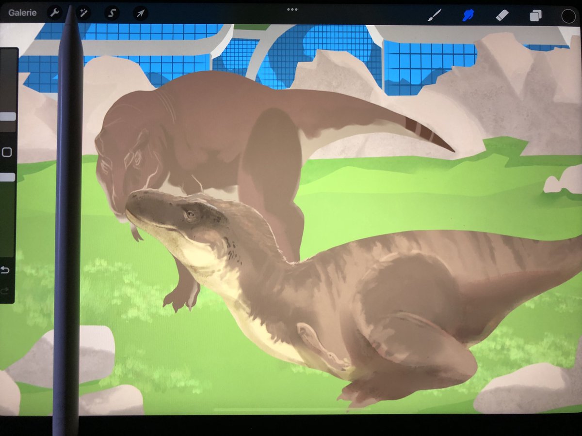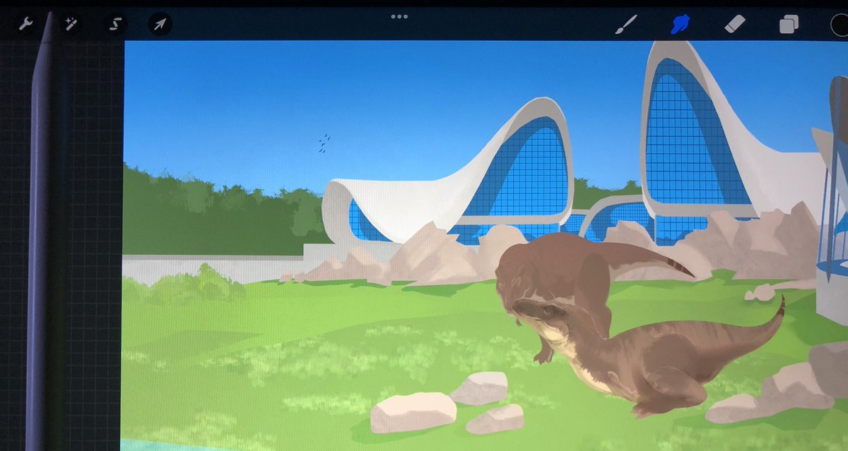 Finally finished the #prehistoricaquarium / The #spinosaurus enclosure. I’m planning on doing one more addition to the #prehistoriczoo for now, any ideas? #prehistorickingdom #dinosaurs #illustration #illustrationartists #artwork #procreate #prehistoricplanet #paleoart