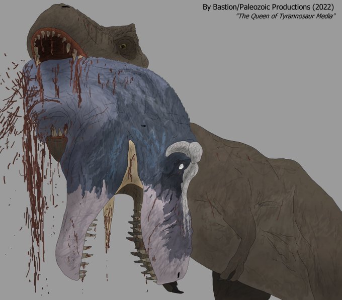 "The Queen of Tyrannosaur Media". Both Tyrannosaurus' engage in a violent fight, but only one reigns. A very controversial piece yet I wanted to experiment with perspective, hope you enjoy!❤️ Links + disclaimer below! #Tyrannosaurus #Paleoart #JurassicPark #PrehistoricKingdom