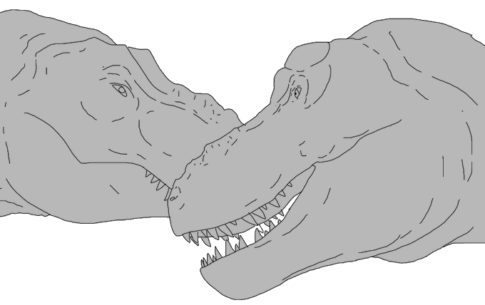 For those who wanted one, here's the good ending version of the previous piece. they're fren #paleoart #tyrannosaurus #prehistorickingdom #jurassicpark