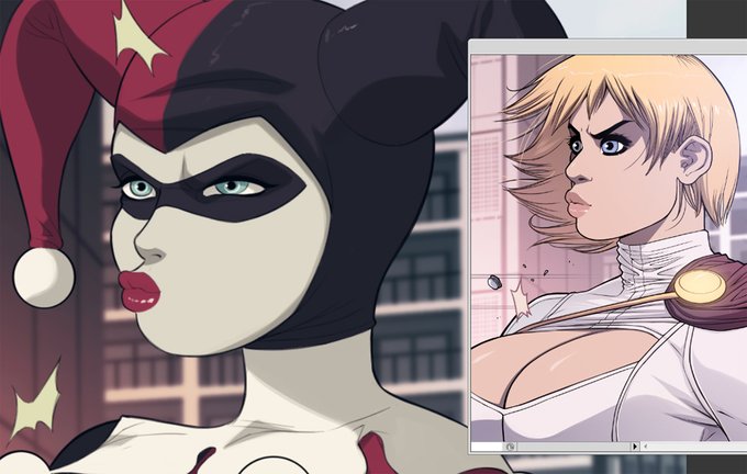 Don't have a new pic for today but I do have a preview of something! (spoofing my own work). #HarleyQuinn #PowerGirl #Fanart #Preview #WIP