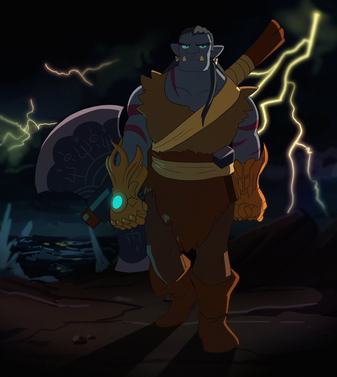 Rho'kik, our half orc barbarian, another brother in arms of Ezekiel and hero of Tayport. His story ended with him ripping his own eye out and becoming the new #primordial #god of war. #Barbarian #dnd #dungeonsanddragons #dndart #anime #halforc #axe #warrior #fantasyart #fighter