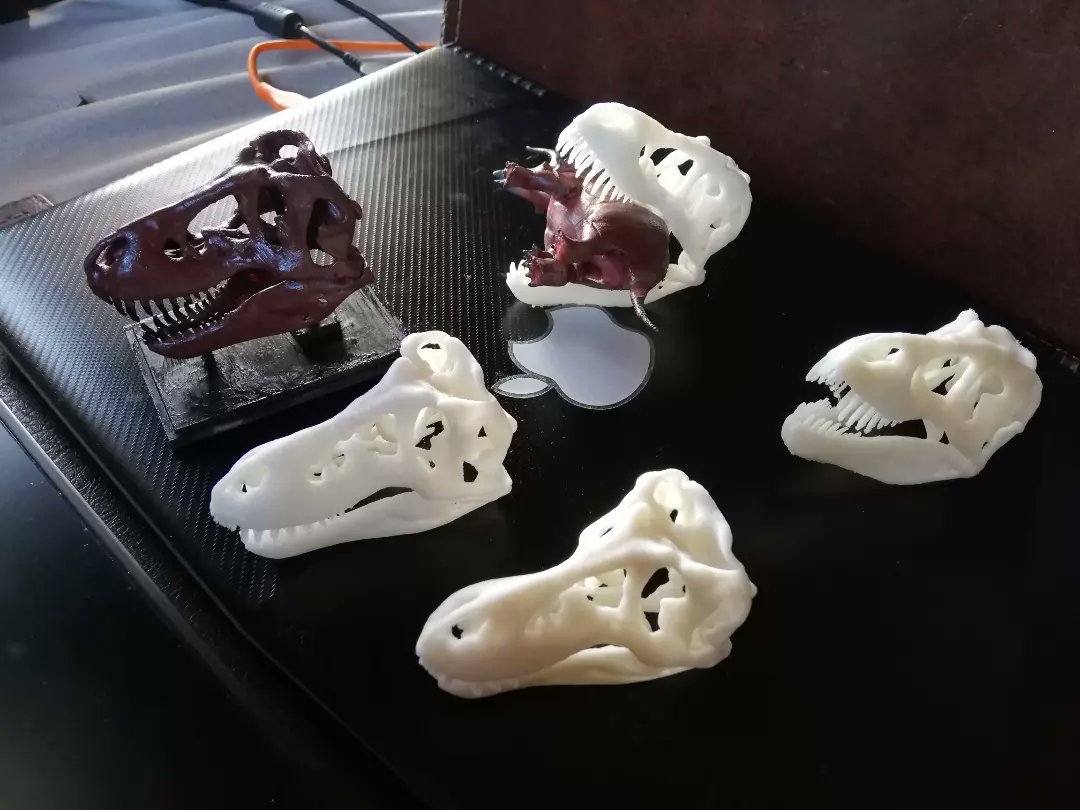 Tyrannosaurus skulls in progress, and a test triceratops I did a while ago and painted as a practice. For sale soon. #zbrush #tyrannosaurus #dinosaur #paleoart #paleontology #3dprinting #triceratops #print3D