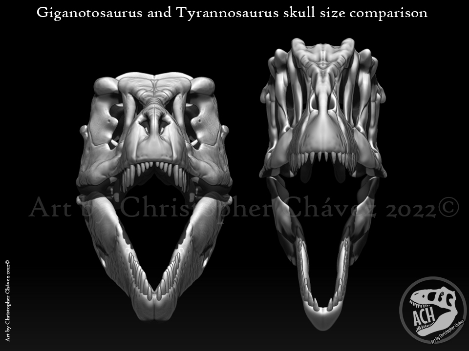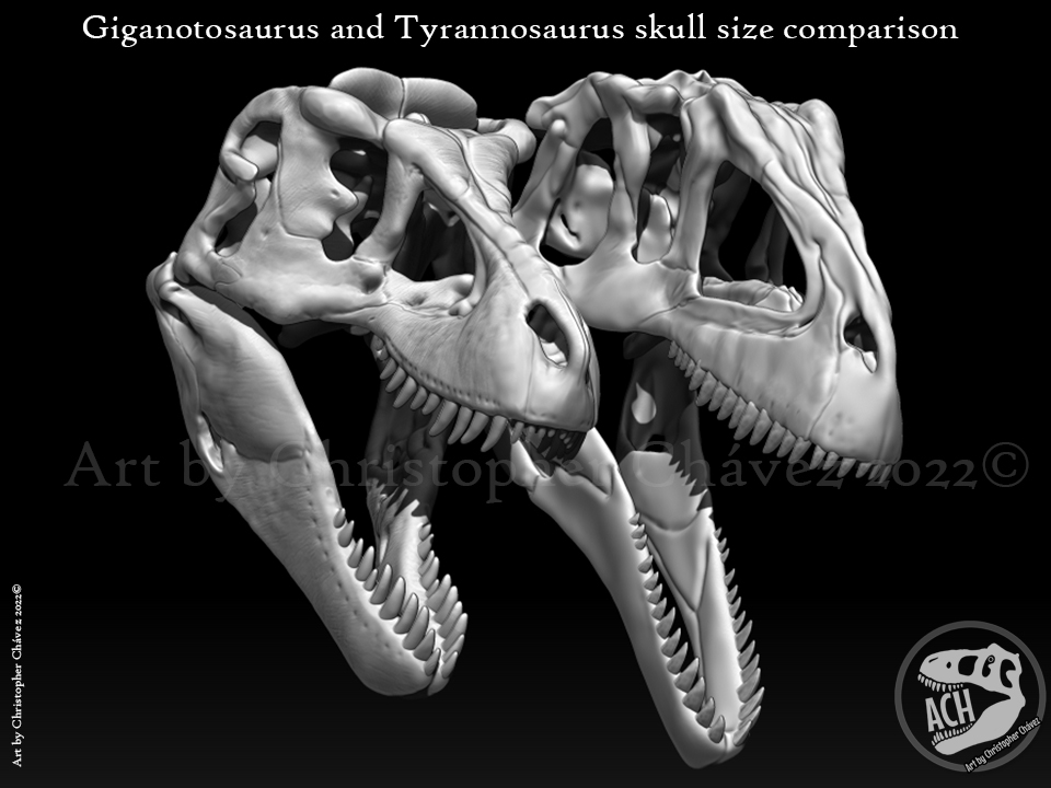 Size comparison of Giganotosaurus and Tyrannosaurus skulls, both based on Scott Hartman @skeletaldrawing brilliant reconstructions. #tyrannosaurusrex #giganotosaurus #JurassicWorld #JurassicWorldDominion #paleoart #print3d #3dprinting