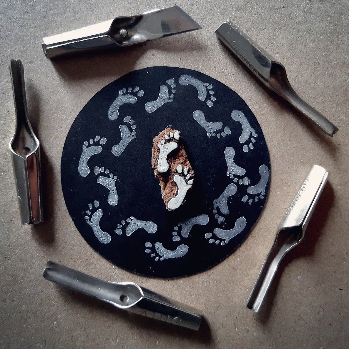 N°20 TREAD, avec beaucoup de retard, mais je voulais tester un mini pattern. :^) #inktoberday20 #footstep #inktober #feet #printmaker #pattern #linocut #circle #tread #microprint #stamp #stampart #miniprint #printandpattern #handmade #traditionalart #artchallenges #artwork