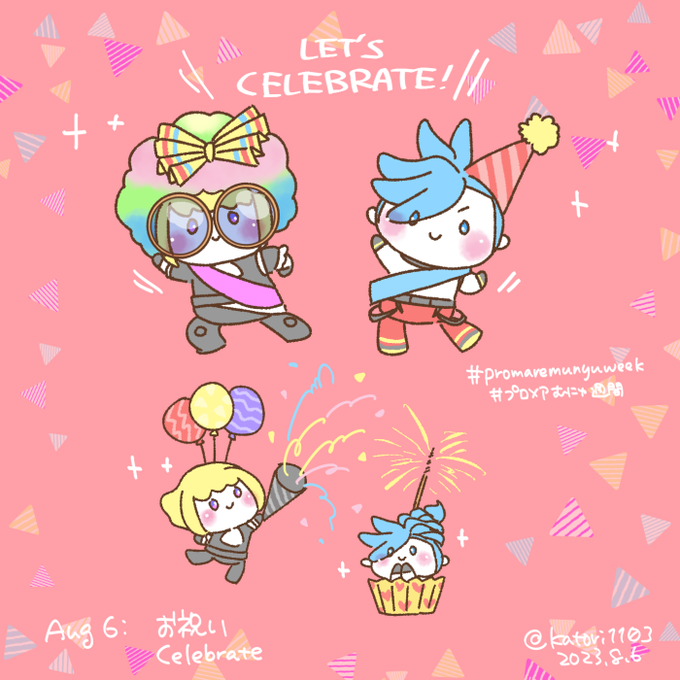 Day 1: Celebrate! Let's party!🥂🎉🎊🎈🪅🧁 (Thank you for the invitation!) #プロメアむにゅ週間 #promaremunyuweek