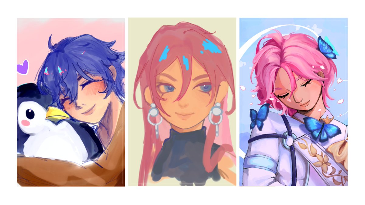 decided to open up some colored headshot sketch commishys bc i need quick $$$ - 15 for 1 chara, 25 for 2!! - pmnt thru p@yp@l dm me if interested!! #promotwt #artwt #commissions #commissionsopen #genshinimapct #genshintwt #artistontwitter