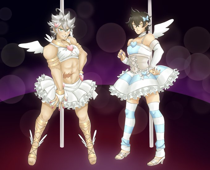 Fly away now ✨ asta and yuno as panty and stocking a collab i did with @spadeprincesss ! i did the lineart and she did the coloring #blackclover #ブラッククローバー #pswg