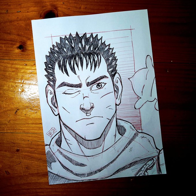 Inktober 2021 Day 29. Guts (and Puck). I chose this one today specifically in honour of @BIB_band releasing their new album #DarkConnection. 🤘 R.I.P. #KentaroMiura #art #artwork #inkdrawing #inktober #inktober2021 #inktoberday29 #berserk #manga #beastinblack #guts #puck