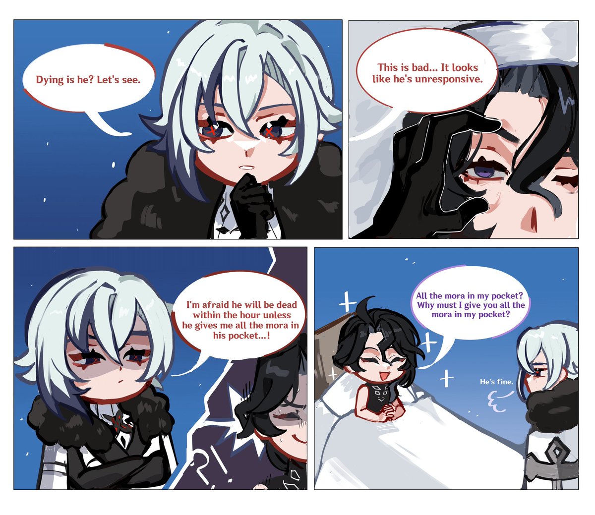 Conversations I’ve had with my friends as Genshin characters pt 1/? #GenshinImpact #genshinimpactfanart #dottore #dottorefanart #childe #childefanart #Pulcinella #fatui