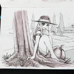 Farmer's daughter with her stolen pumpkin.🎃👩🏻🌾 #inktober #inktober2022 #inktober2022day31 #inktoberfarm #AnimeArt #animegirl #pumpkinart