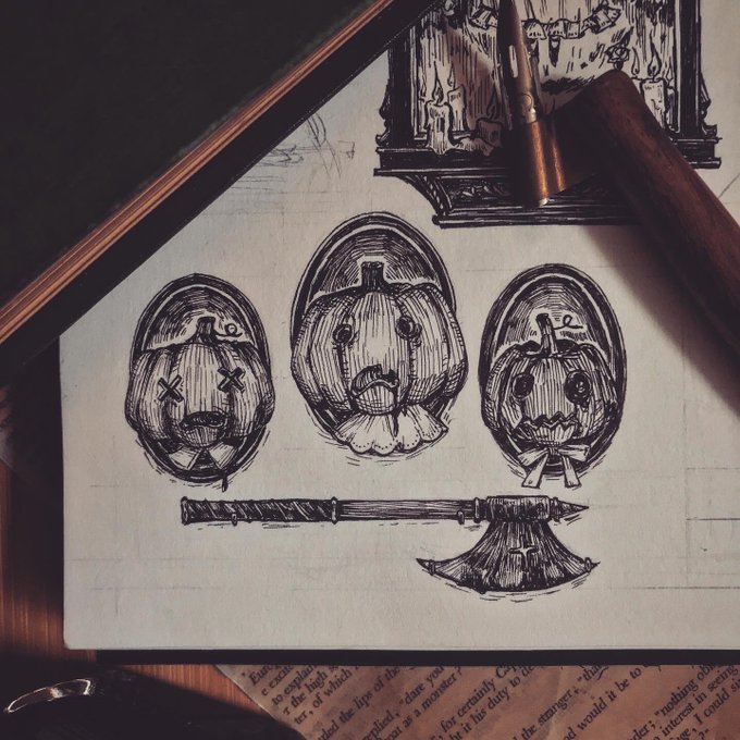 Day10 pick + pumpkin My lovely pick of pumpkins for the day🤣~~ Look~~~ #inktober2021 #pumpkinspice #halloween2021 #絵師さんと繋がりたい