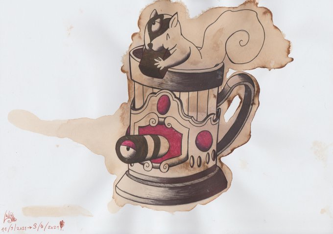 Day 3: Vessel. " Soviet Coffee Cup ". Based on: " Soviet Coffee " and " Pelamushi " by #Belka . #Inktober2021 #Vessel #Inktober2021Day3 #Inktober #SovietCoffee #Pelamushi #BelkaCafe #purpleeye #drawing