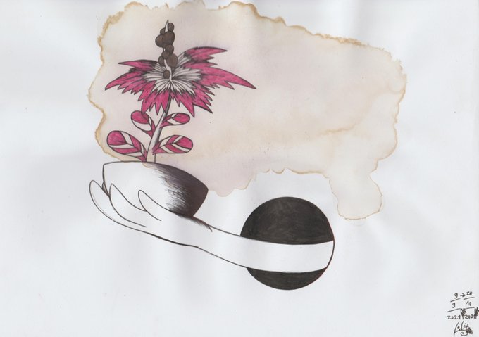 Day 20: Sprout. " Red Basilie ". #Inktober2021 #Sprout #Inktober2021Day20 #RedBasilie #herbaltea #homemadefood #Inktober #purpleeye #drawing
