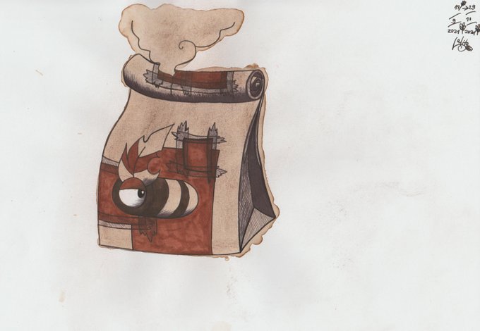 Day 29: Patch. " Longest Used ". Technique: Roastbrown color. #Inktober2021 #Patch #Inktober2021Day29 #coffee #Roastbrown #Inktober #purpleeye #drawing