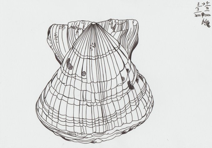 Inktober Series 2022 Day 4 : Scallop. " White Giant Scallop ". #Inktober2022 #Scallop #Inktober2022Day4 #Inktober #purpleeye #drawing
