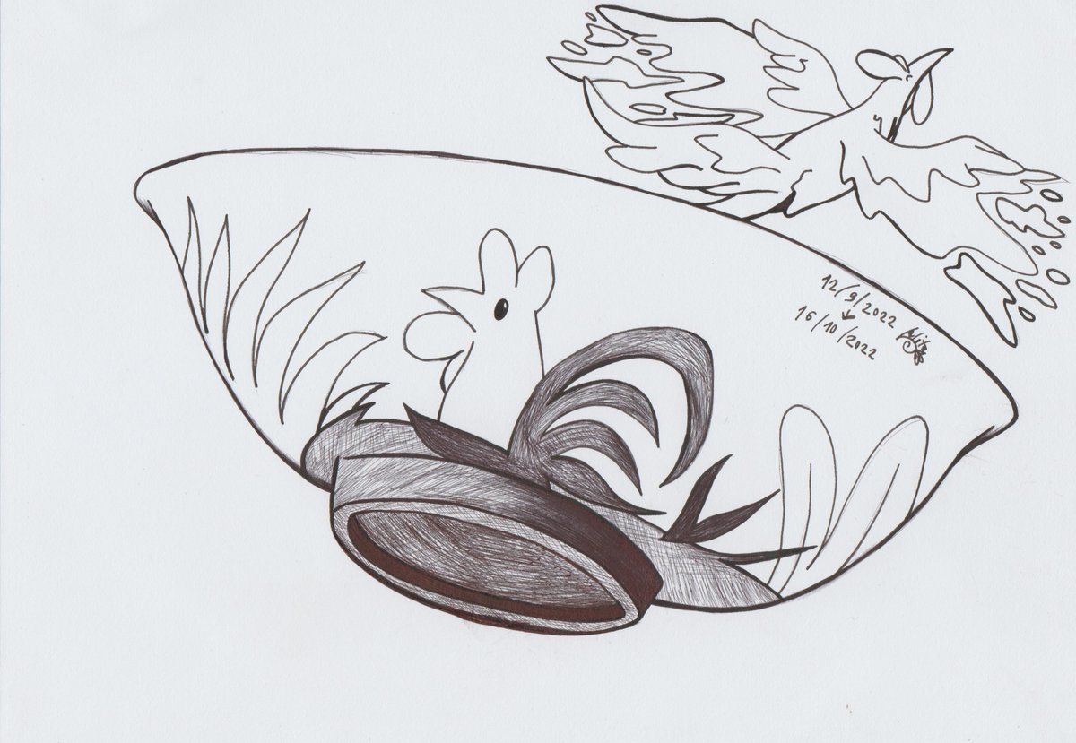 Inktober Series 2022 Day 16 : Fowl. " Chicken Bowl ". #Inktober2022 #Fowl #Inktober2022Day16 #RoosterBowl #Inktober #purpleeye #drawing