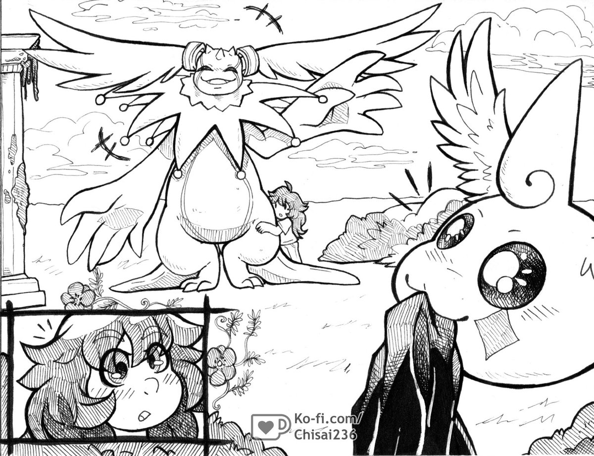 🌸 "The Poppy Flower of Kindness" - (02/31) The angel soon meets their human companion. Chosen especially for them! #digimon #digimonfanart #cherubimon #puttimon #poppy