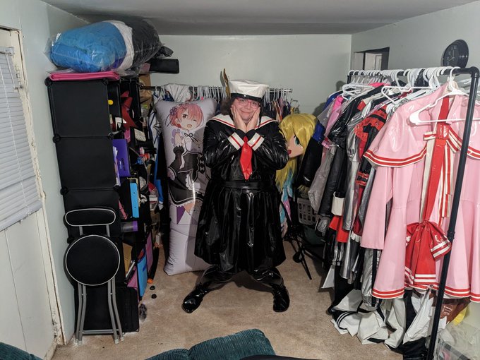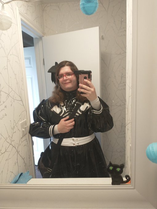 We of course wore it all out for a little walk, with how sweaty it was I was a little worried I wasn't going to be able to get it off lol #PVC #cosplay #schoolgirl twitter.com/GracideaC/st…