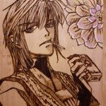 🌸Dessin du jour🌸 🌸🚬 Second dessin au pyrograveur, j'avais déjà fait ce dessin de Sanzo sur un veste mais j'ai pas pu m'en empêcher, j'aime tellement cette planche ☺🚬🌸 #saiyuki #最遊記 #玄奘三蔵 #saiyukifanart #最遊記RELOAD #最遊記ZEROIN #pyrogravure