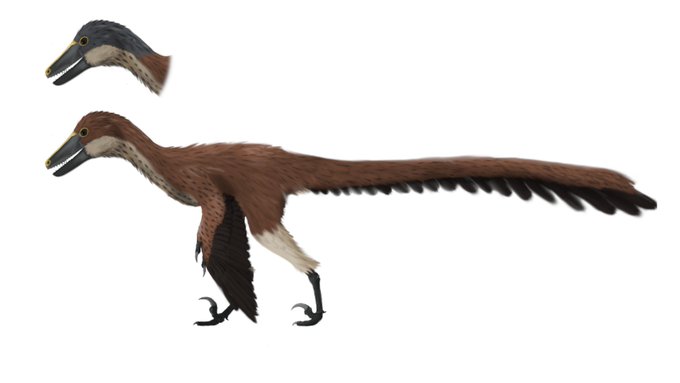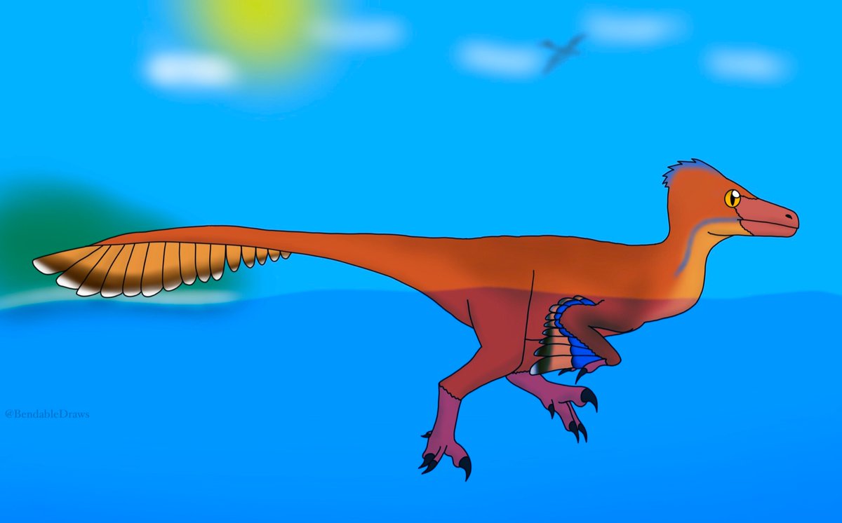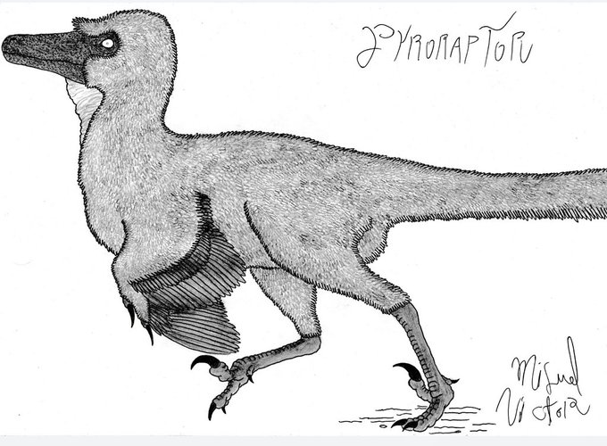 I tried a small draw of #pyroraptor for seeing what it could looked like if it was a Unenlagiianea, as Pyroraptor could be part of this sub-family. I used the diagram of @MetTiinA but I make the head more shorter and more robust to fit with its big teeth. #paleoart