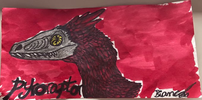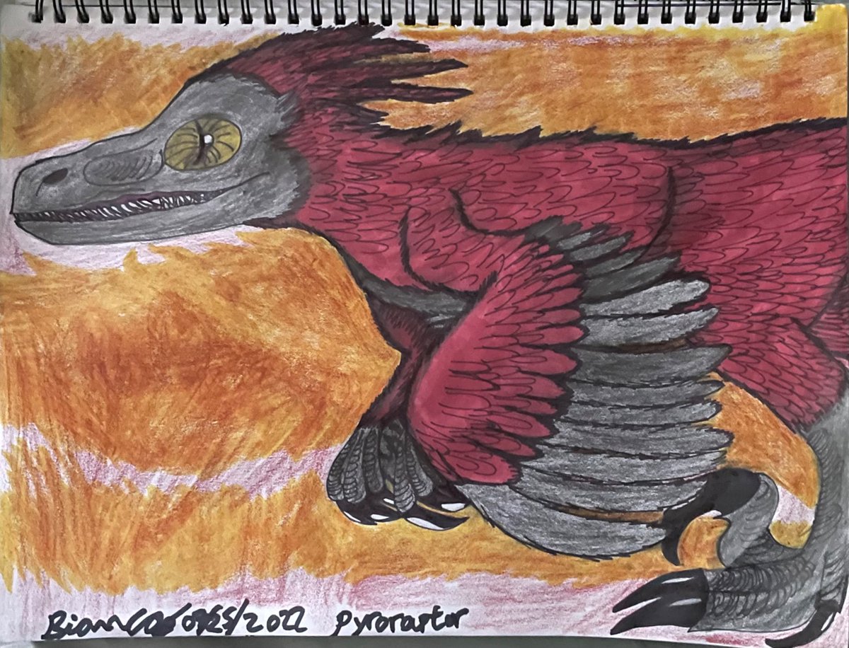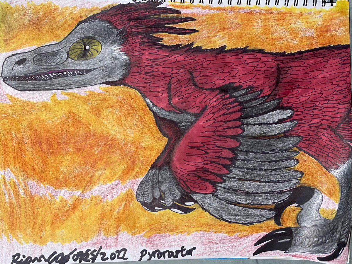 the jurassic world dominion: pyroraptor 💕❤️🔥💗 - i love her so much, i loved drawing her! the fiery pyroraptor is so cool.💖 - #JurassicWorld #paleoart #paleoartist #dinosaur #pyroraptor #JurassicWorldDominion #myart #raptor @JurassicWorld