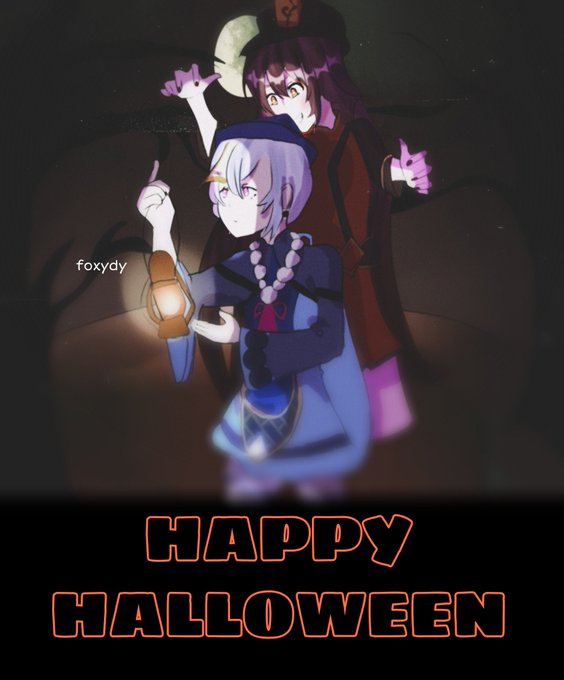 happy Halloween!🎃 #halloween2021 #HappyHalloween #genshinimpactfanart #HuTao #Qiqi #Genshin #hutaofanart #qiqifanart