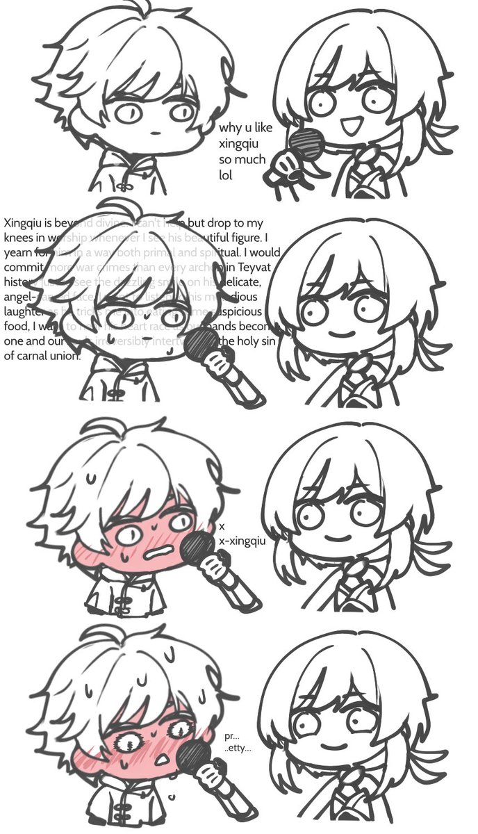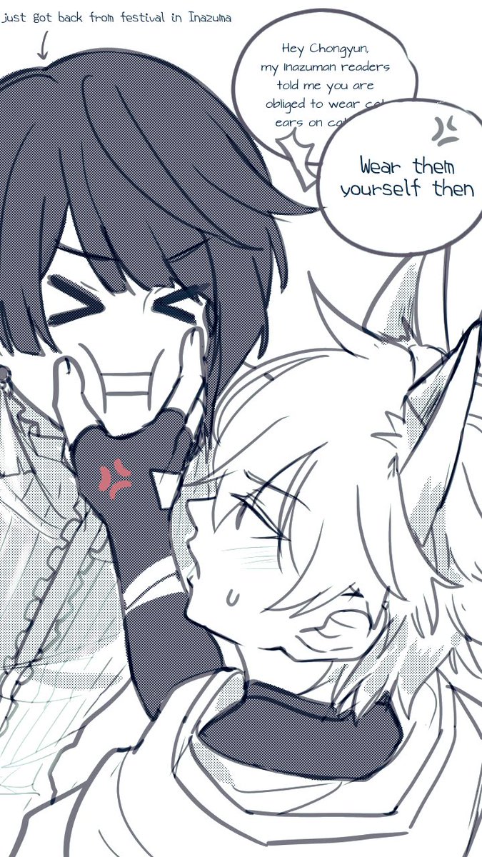 After school, chilling #xingyun #chongqiu #qiuyun #yunqiu #chongyun #xingqiu #genshinimpact #genshinimpactfanart #procreate #sketch #coloredsketch #fanart