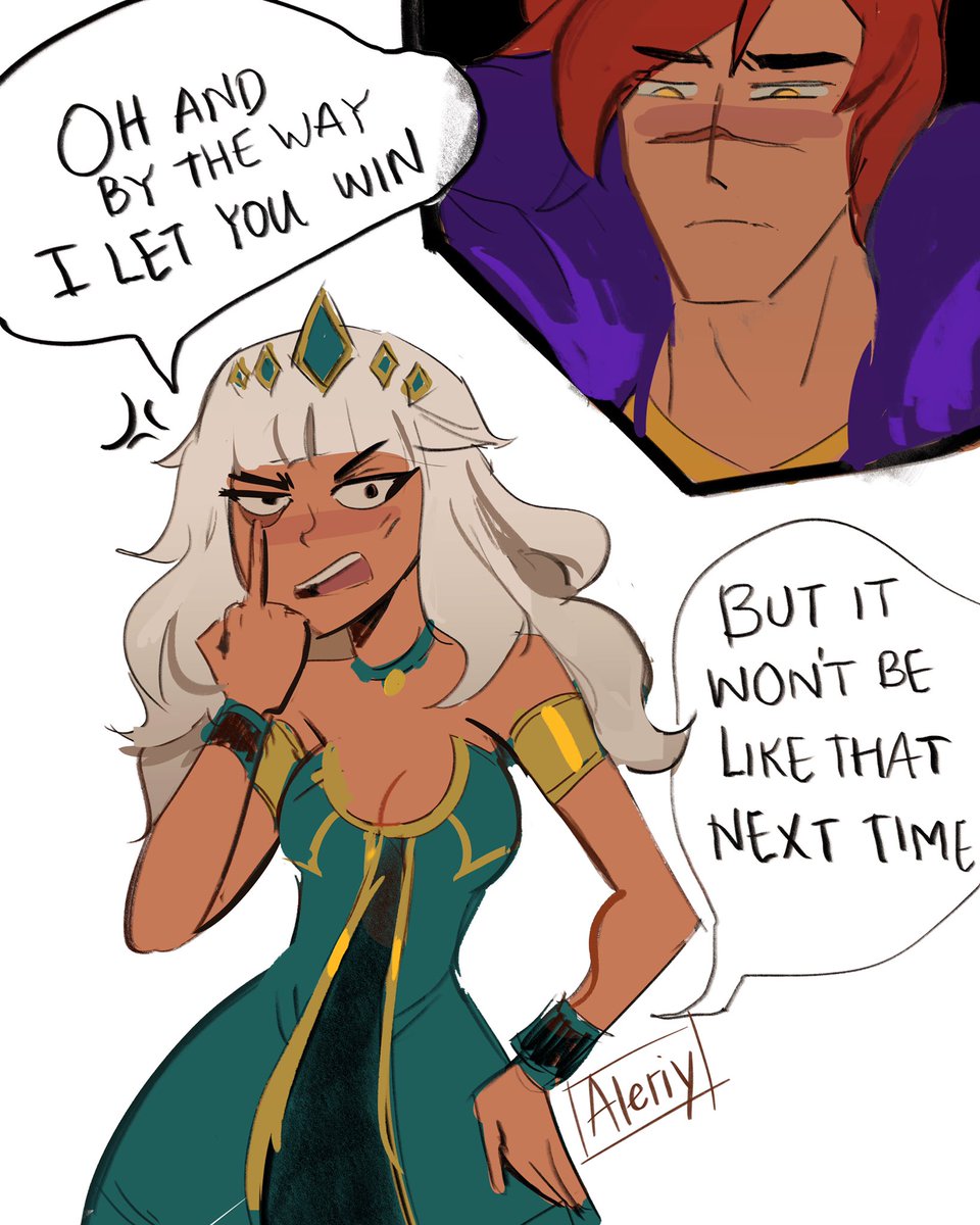 My first attempt at non chibi Shen @GalacticTitty ! A friend loved how Shen helped Qiyana work her shoulder for the splash lol. Plus some tiny admirers 👀 #ArtofLegends #LeagueOfLegends #LeagueOfLegendsFanArt #qiyana