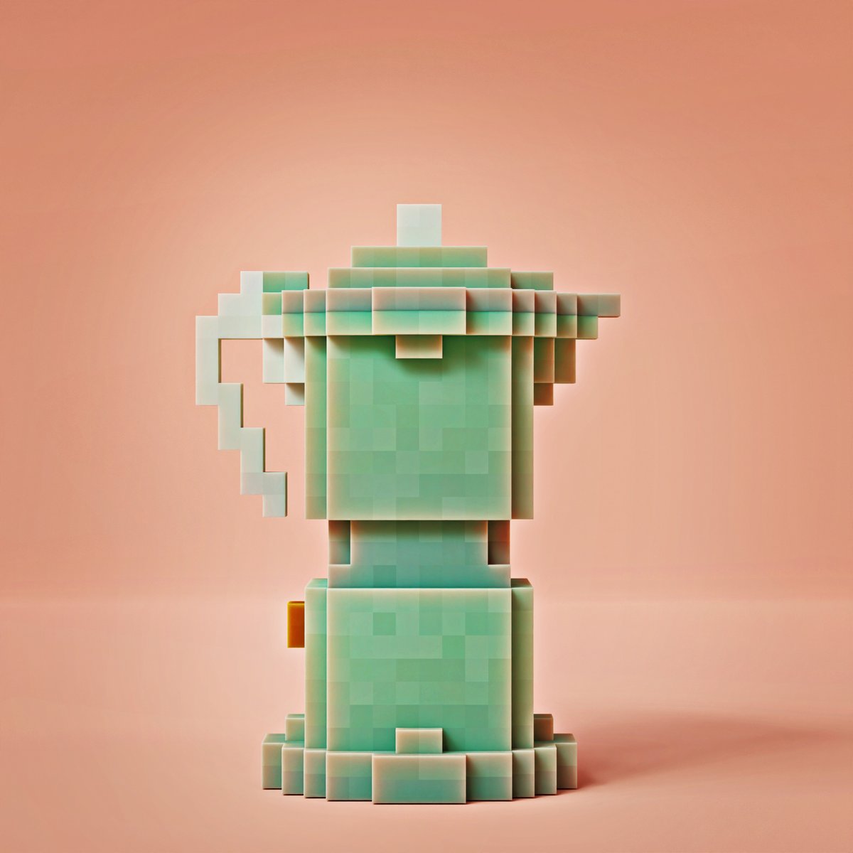 Yes✨!, Today I have made an asset of an Italian coffee pot or moka pot with voxels 😊 It turned out nice, or so I think 😅 Based on a pinterest photo Pipeline: #qubicle + #blender + photoshop - #voxelart #voxelartist #Blender3d #lowpoly #b3d