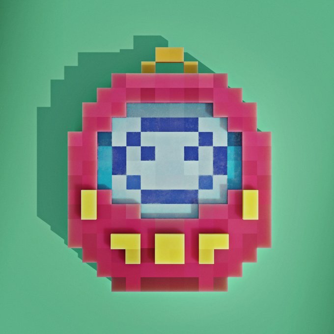 A tamagotchi in voxels 😊! ... I had this very same model 🥰 Based on a pinterest image Pipeline: #qubicle + #blender + #Photoshop. - #voxelart #voxelartist #Blender3d #lowpoly #b3d #3dasset