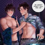 #DeadbyDaylight #dbdfanart #dbd #QuentinSmith #SteveHarrington #Harringsmith commission for @VminxYoonmin! Special thanks to @poyo_ii for the inspiration of Quentin being in Glenn's crop top💜
