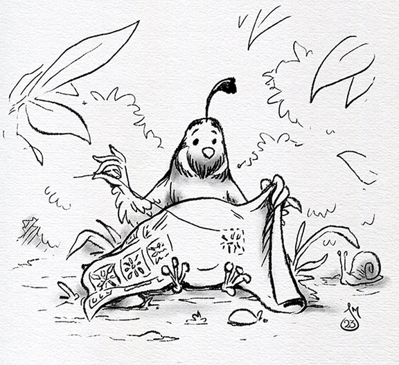 Monday morning #DailyDoodle for @AnimalAlphabets Q A quick Quail Quilting quite well. #KidLitArt #KidLit #Quail #Quilting