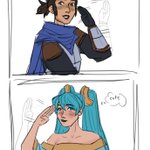after that sona brought quinn a glass of water:) yes, quinn learned sign language just to talk with sona uwu #artoflegends #quinn #sona