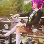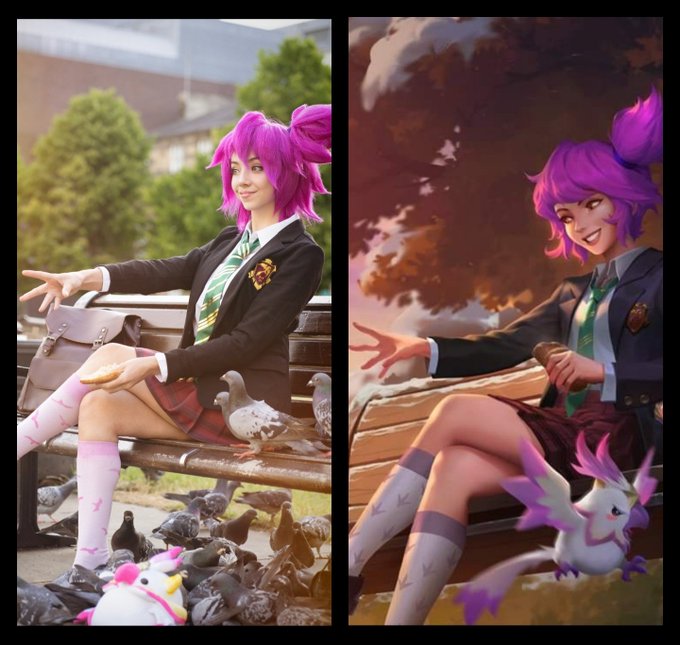 Starguardian Quinn - @LoLUKN @LeagueOfLegends #sponsored #starguardians Valor is losing the battle with the pigeons! (The pigeons are real ! I couldnt keep a straight face) Reference art is from @PlayRuneterra #quinn #leagueoflegends Costume, wig, photo by me ^_^