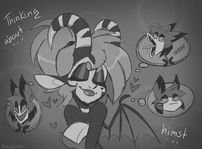 ❤️ A delightful little piece I got the pleasure to draw for the darling @LadyGValentine of their glorious gal with the devious deer lad ❤️ LadyG still needs some help with her vet bill so please go check out her gofundme! #HazbinHotelOC #HazbinHotelAlastor #radiodoe #artofrhues