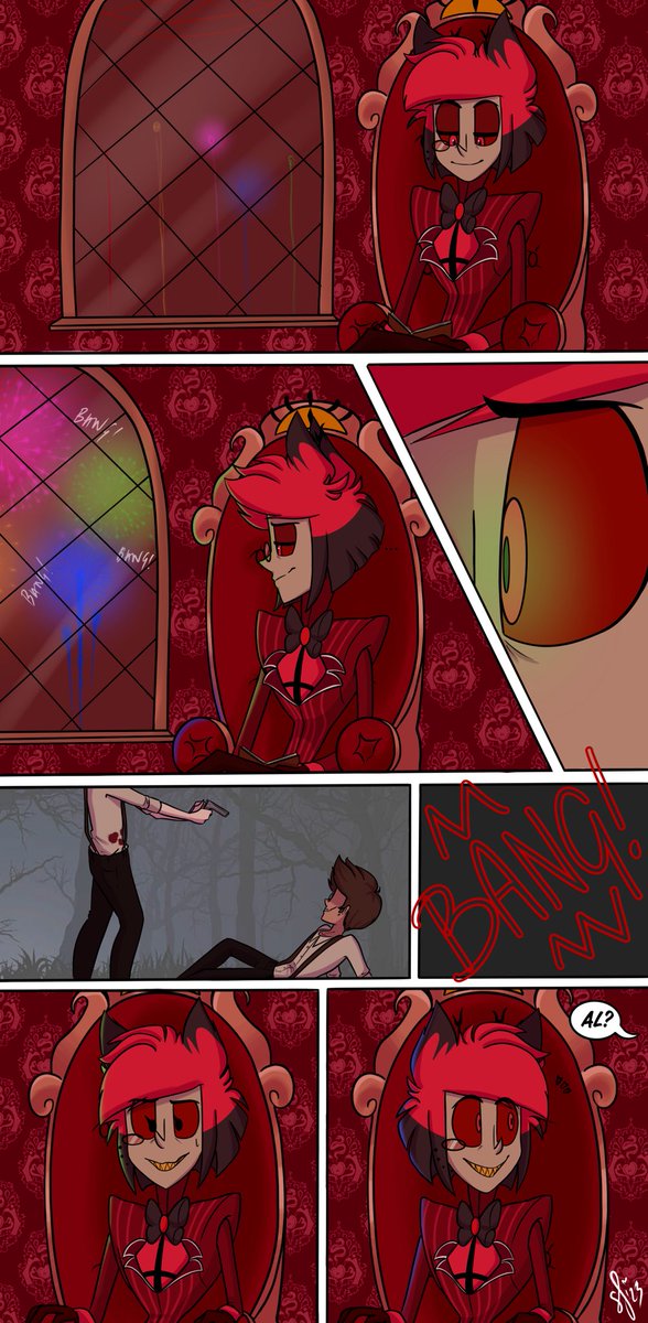 So.. I have a little headcanon. Al has PTSD when he hears fireworks, which happen at the end of every extermination👀 Enjoy the hurt/comfort🤗 #hazbinhotelfanart #hazbinhotelangeldust #hazbinhotelalastor #radiodust #hazbinhotel #radiodustcomic