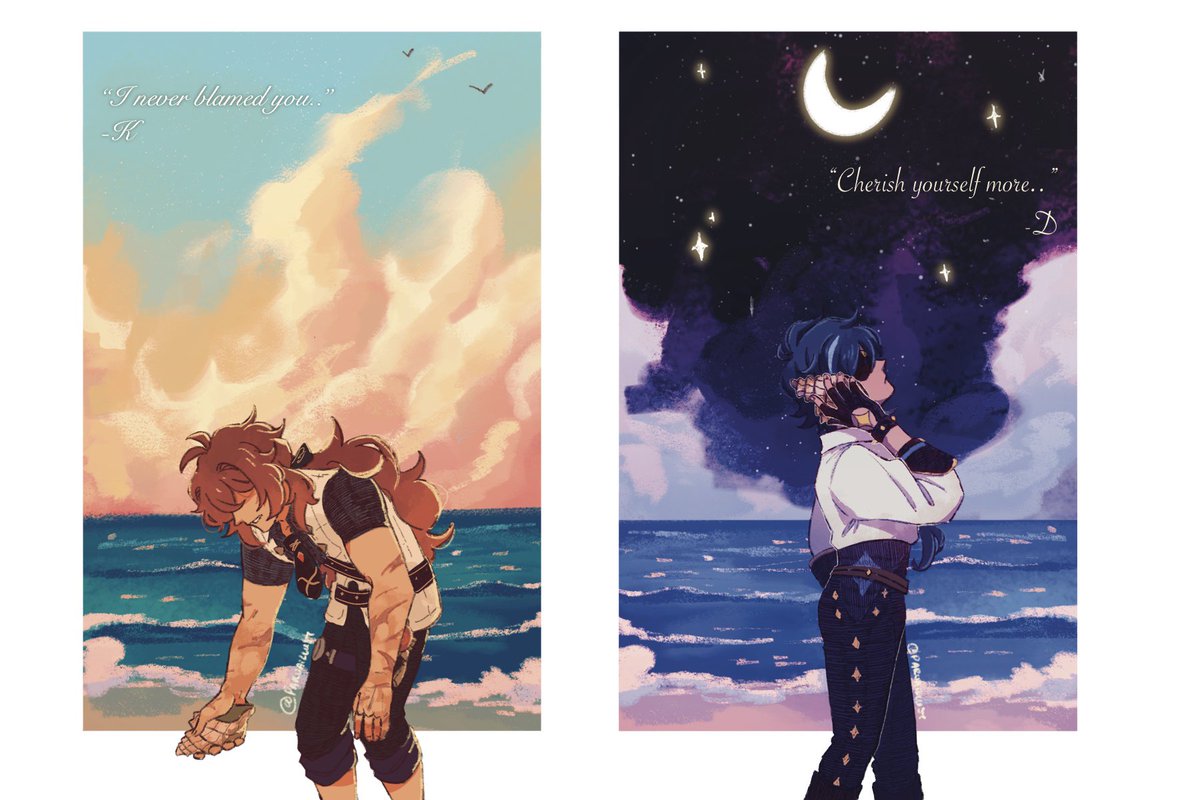 Day 1- seashells/ beach The lines based from the letters in Hidden strife event! Idk i just think those are the words they want to hear from the other person 🥺 #ragbrosweek2022 #Diluc #Kaeya