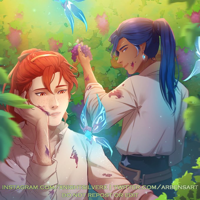 Ragbros Week Day 3: wine/crystalfly "One might wonder how they got this much juice on themselves simply harvesting grapes. Well, the answer is - not all the grapes landed in baskets." #kaeya #diluc #ragbros #ragbrosweek2022 #genshinimpact #genshinimpactfanart @ragnvindrquotes