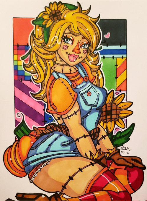Clara trade for @ScooterDoodles :) #beibakumae #rainbowbrainsplatterings #ohuhumarkers #scarecrowpinup #pinupart #sunflowers #myartwork
