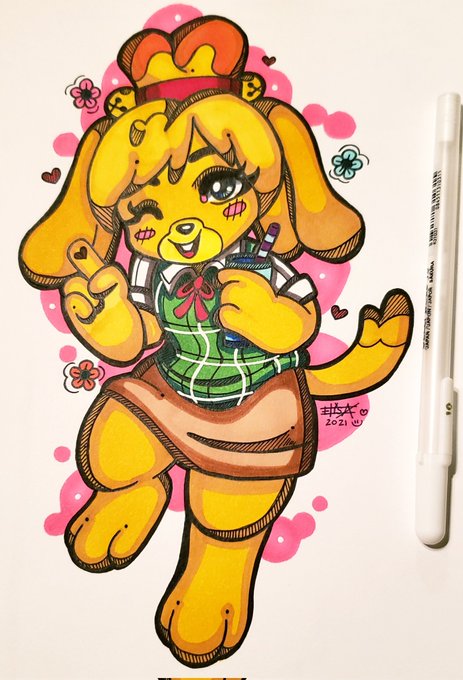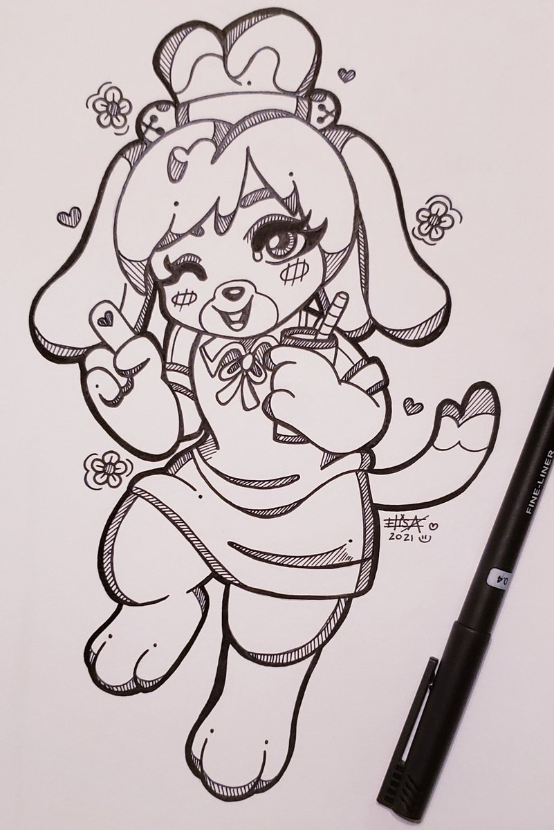 I'm excited about #AnimalCrossing #NewHorizons dlc! Spent some time sketching out #Isabelle Still deciding if I should color her. #beibakumae #rainbowbrainsplatterings #fanart #inkdrawing #Nintendo