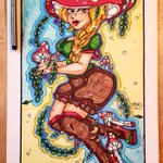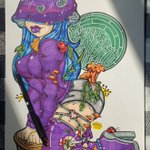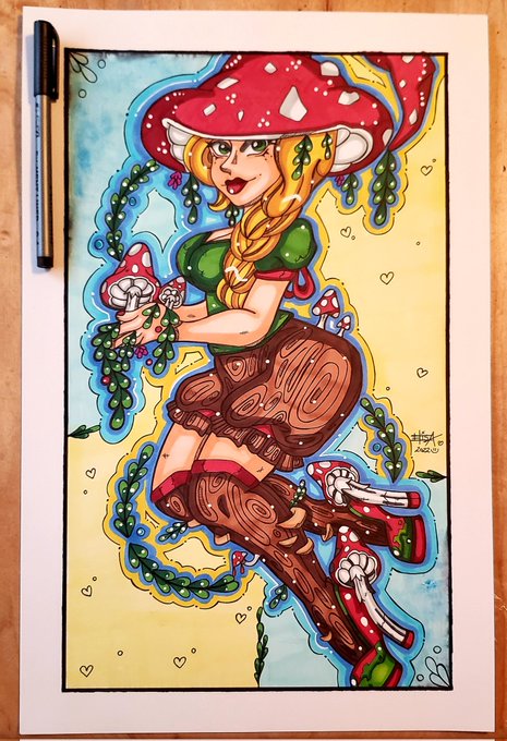 I think I may have finally found a measurement of paper that works for my pinup art. Pretty pleased with my #mushroom #pinupgirl that will be a piece for the collective mushroom art collaborative in May. #ArtistOnTwitter #rainbowbrainsplatterings #beibakumae #orginialart